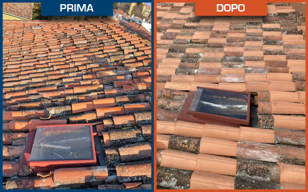 - Sostituzione di tutti i coppi o tegole rotte o danneggiate